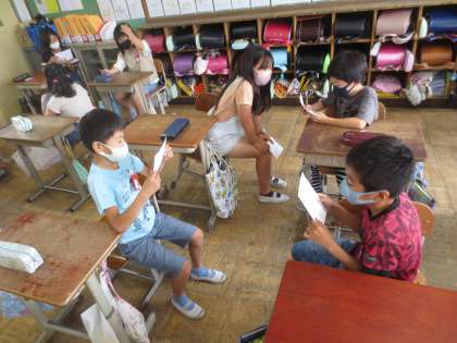 お話のどんな良さを伝えたかったのか,話をしながらポップを見合いました。