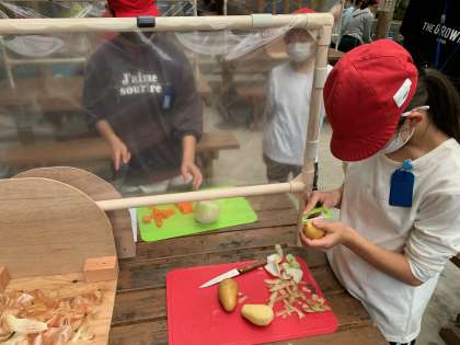 6年生は、カレーづくりです。生活単元での調理の成果もあって、手際良く調理したり、かたづけをしたりしていました。