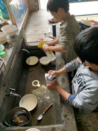 食べた後は使った食器やお皿を丁寧に洗いました。一人一人が自分に出来ることはないか考えて行動することができました。