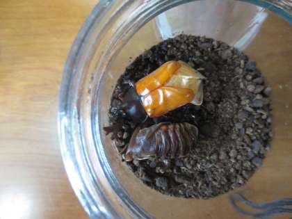 理科の時間に幼虫とさなぎの様子を観察していたカブトムシが,どんどん成虫になっています。