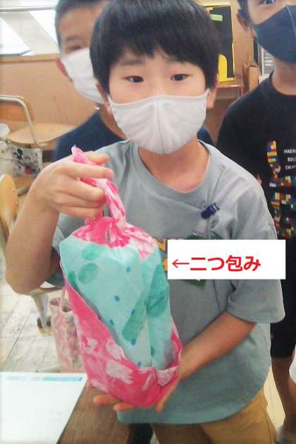 ・ふろしきでつつむと,べつのものになったのでおどろきました。