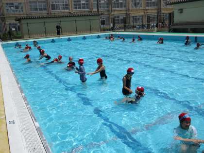 平泳ぎの練習も始まり,少しずつレベルアップしています。