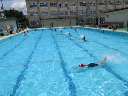 朝方は雨模様でしたが,水泳学習が始まる頃には