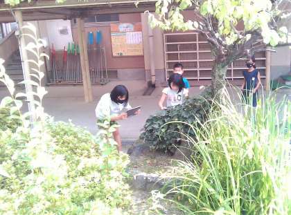 今日は,学校にある「葉」を見て歩きました。