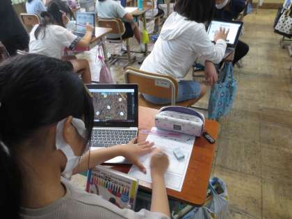 卵の観察はできなかったので,一人一人タブレットを使って画像を検索し,その写真を見ながら観察カードを書きました。