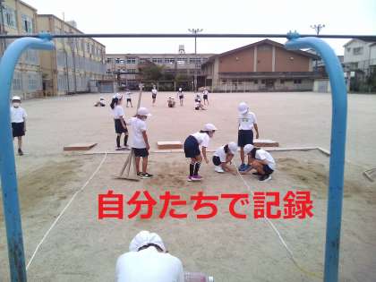 今回の走り幅跳びでは,自分たちで記録をとっています。