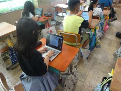 週1回ぐんぐんタイムの時間にタブレットを使って,タイピング練習をしています。4月に比べると文字を打つのがだんだん早くなってきています。どんどん練習していきたいと思います。
