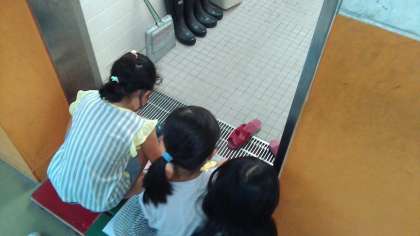 「先生,スリッパがぐちゃぐちゃだったから揃えておいたよ。」