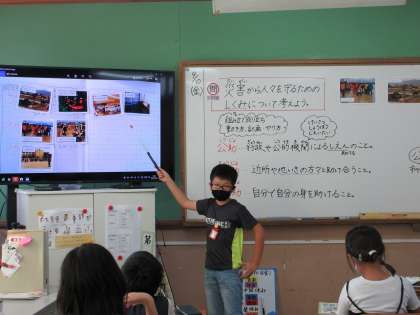 今日は,災害から人々を守るためには,どのようなしくみがあるのかについて考えました。