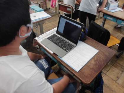 今日は,自分の普段の生活を紹介する学習をしました。マスクをとって顔を合わせての交流はできませんので,自分で動画を撮影して,ロイロノートで送ります。カメラに向かって「Hello.」と話し始めます。困ったときには,ICT支援員の方に声をかけて,自分で問題解決。どんどんタブレットの使い方も上達しています。