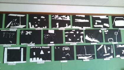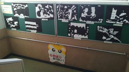 夏休みの自由課題のあとに,図画工作科で取り組んだ「はさみのあーと」の作品を掲示しました。