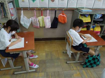 2学期から始まった漢字学習。お家でも宿題でしっかりと練習し,覚えています。