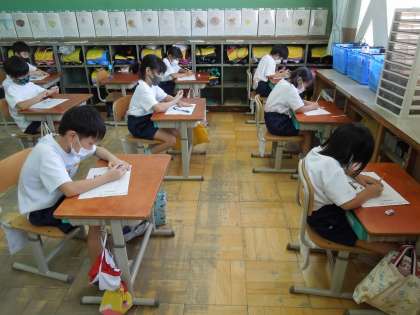 学習した漢字を覚えているかの確認テストで小テストをしました。