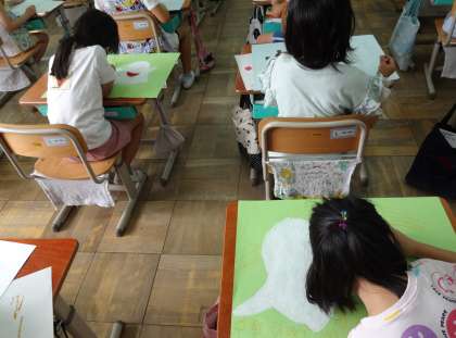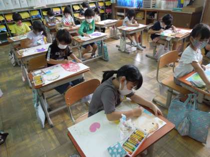 今日は,先週描いた下絵に色を塗りました。どのクラスもみんな黙々と,集中して取り組んでいました。今週中には完成できそうです。