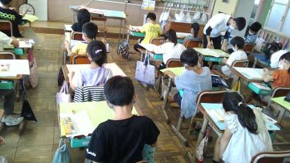 図画工作の学習でお話の絵に取り組んでいます。