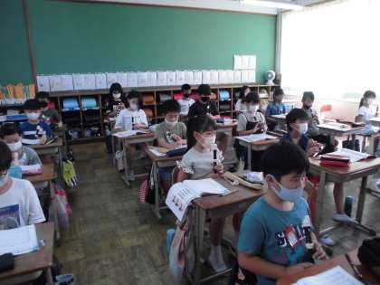 今日の音楽は,「オーラリー」という曲を聴き,旋律が重なり合っていることを確かめました。なめらかなきれいなメロディーで,リコーダーでも高い音を響かせて演奏していきたいと思っています。いまは,緊急事態宣言中なので,学校で演奏はできません。指練習だけ,階名唱をしながら取り組んでいます。もし家での練習が可能であれば,教科書43ページを見ながら,サミングの演奏の仕方で,高い「ミ」「ファ」に挑戦してみてください。