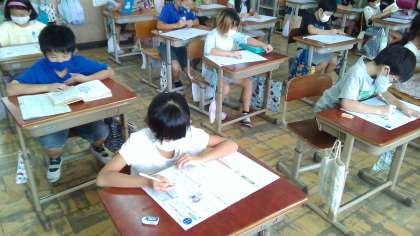 問題をよく読んで,しっかりと考える子どもたち。最後まで真剣な表情で,取り組んでいました。