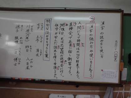 「漢字の読み方と使い方」では,特別な読み方をする言葉を学習しました。「七夕」は「たなばた」,「八百屋」は「やおや」,「一日」は「ついたち」。気が付けば,身の回りで,たくさん使われていることに驚いていました。