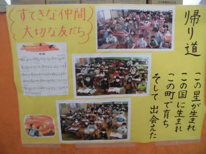 みんなが出会えたことって,すてきなことだねということで,クラスの集合写真を撮りました。廊下に掲示しているので,3年生みんなで見ています。