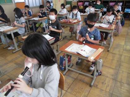 リコーダーの演奏も3グループに分かれて行っています。