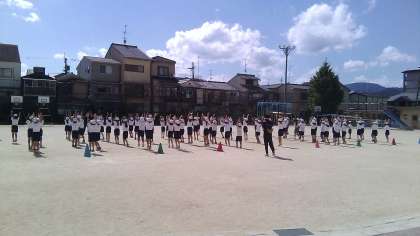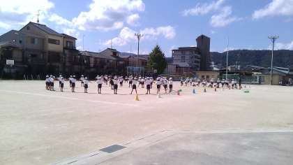 今日,初めて運動場での練習だったので,どのように動けばよいか戸惑う場面もありましたが,子どもたちの表情はまさに「全集中」!