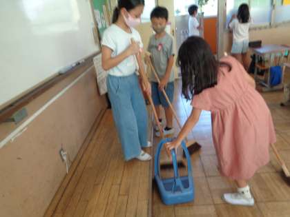掃除の時間にはいつも一生懸命取り組む様子が見られます。きれいな学校にするために毎日の掃除をこれからも頑張ってほしいと思います。