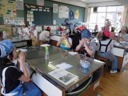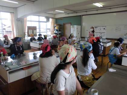 家庭科では,安全に気をつけて,火を使う学習をしました。家庭科室で,湯を沸かしてお茶も入れました。両手でコップを持ち,お行儀よく,上品に飲んでいました。