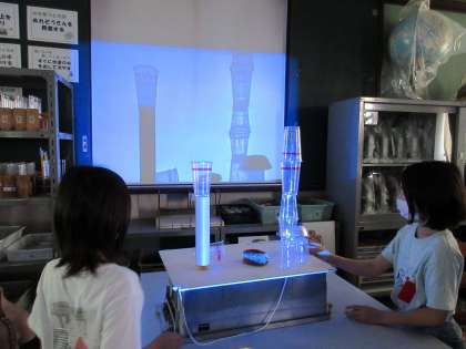 かみコップを重ねてビルのようにしたり,筒とお皿を合わせてきのこのような形を作ってみたりなど,たくさんのアイデアを出し合いながら,お話作りにも挑戦しました。