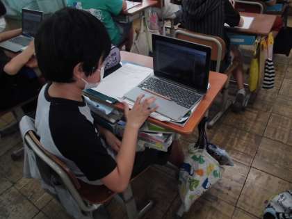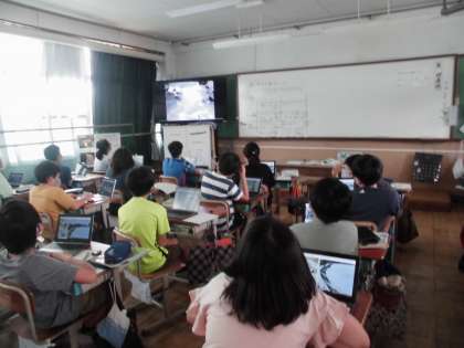 今日は,「流れる場所によって,どのような違いがあるのだろうか。」について,調べました。写真を見たり,動画を見たりして,流れる速さや石の大きさ,石の形の違いに気づくことができました。最後に,Google マップの航空写真から,上流から下流にかけての様子を見て,流れる水のはたらきと関連付けて土地の様子や石の様子を考えました。