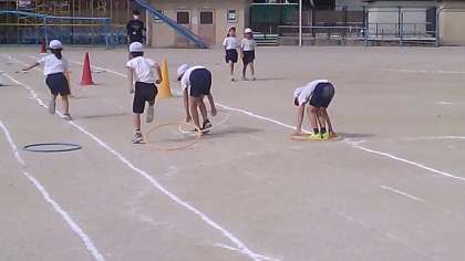 今日の体育では,ウメリンピックに向けて,アイデア走の練習を実施しました。