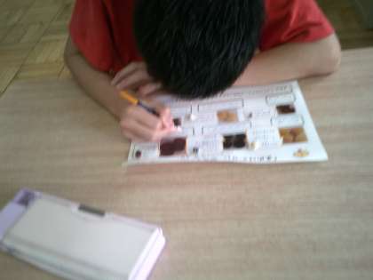 栄養教諭の小林先生の食の学習で,「豆」についての授業がありました。給食などの食材として使われる「だいず」「くろだいず」「きんときまめ」「あずき」「てぼうまめ」「りょくとう」の6種類の豆について,写真を見ながらどんな料理に使われているかなど紹介してもらいました。それから豆の実物を貼り付けたワークシートにその名前を思い出して書いていきました。