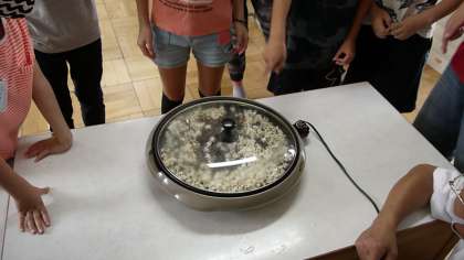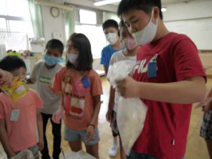 ホットプレートの中ではじける様子に驚き,だんだんと出来上がっていく様子を楽しんでいました。できあがったポップコーンは,塩味とカレー味にして食べました。カレー味の方が人気でした。