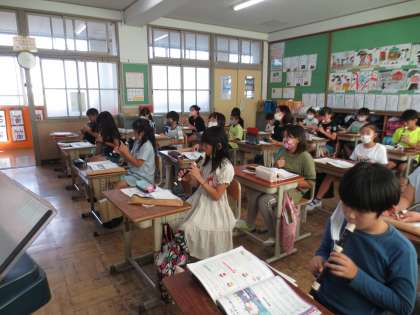 全員で一斉に吹くことはせずに,グループを作って少人数で演奏をしています。