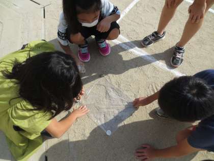 理科「雨水のゆくえ」で,運動場にたまった雨水はどこにいくのかを考えました。