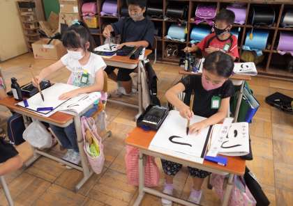 今日から,名前も小筆で書くようになりました。