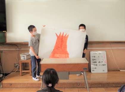 そのカードを貼る「木」を,計画委員会の児童がもってきてくれました。