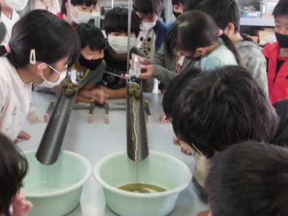 今日は,流れる水のはたらきの学習で「運搬と堆積」の働きに焦点を絞って,実験をしました。1回学習した内容でしたが,実験方法を変えることで,また新しい発見がありました。