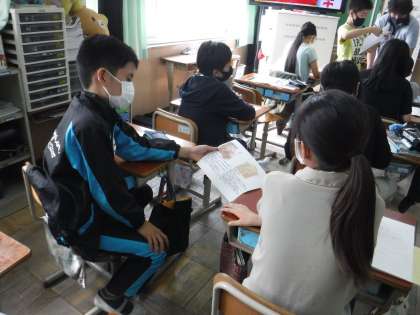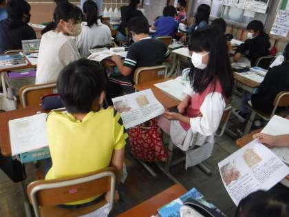 社会科で豊臣秀吉の検地・刀狩について学習しました。資料などをもとにどのような取り組みだったのかを調べました。この取り組みによって,「兵農分離」したことを知り,「農民の人たちは戦いに行かなくてよくなったから,うれしく思っていた人もいただろうな」という感想も出てきました。その一方で,「自分で決めるのではなくどっちって決められたらいやな思いをした人もいるだろうな」という意見も出てきていました。歴史を学習しながら,社会の不条理を知り,それにどのように対応していけばよいのかを考えていければと思います。