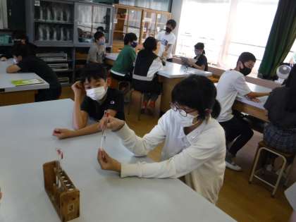 今回の理科は「炭酸水には何がとけているのか」について考えます。いろいろな予想が出てきました。振ったり,温めたりしながら実験を行い,最終的には何がとけているのかを確認することができました。子どもたちからは「これまでに学習してきたことを使ったら,何がとけているのかについても分かるんだな」という感想も出てきました。これからの学習も楽しみです。