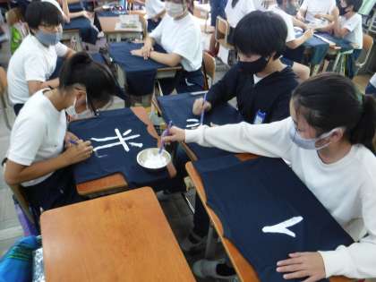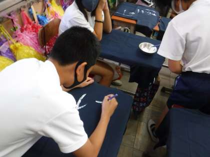 ひらがな,カタカナ,漢字の中から自分の好きなものを選んで名前をかいています。大きさなどを意識して一生懸命書いています。