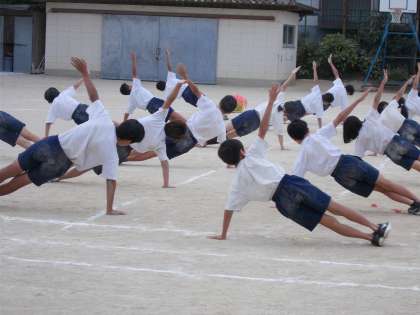 演技の一人技です。カイトの曲に合わせて心を一つに頑張っています。だんだんそろうようになってきました。とってもきれいです。本番が楽しみです。