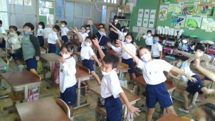「楽しみやな。」「本番間違えずに踊れるかな?」と,2年生の子どもたちも朝からドキドキわくわく!