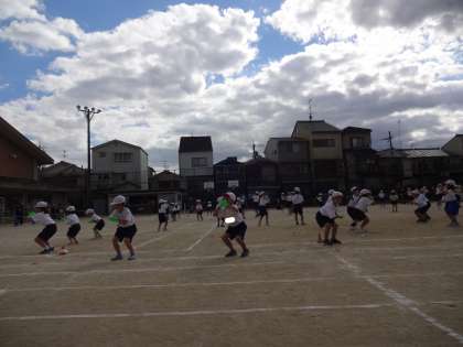 6年生に紹介してもらって音楽が始まりました。少し緊張しながらも元気よく入場し,「えんとつ町のプペル」の曲に合わせて踊りました。みんな力いっぱい楽しく踊れていたと思います。何よりも一年生全員で揃って踊れたことが嬉しかったです。終わったあとは,「緊張した〜。」「楽しかった!」と,とても満足気な顔で話していました。みんなとてもきらきらしていました☆