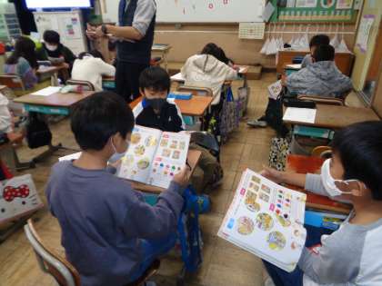 外国語の学習で「アルファベットクイズ」をしました。相手に伝わるように,英語を使って問題を出したり,答えたりしました。楽しく活動することができました。