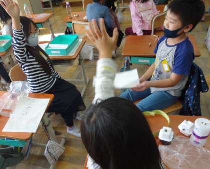 お友達の作品で遊んだり,素敵なところを見つけたり,