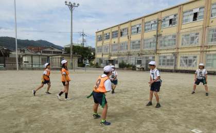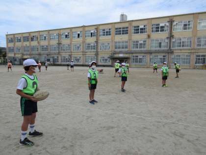 ラグビーボールに触れることが初めての子どもが多く,パスの難しさを感じていました。