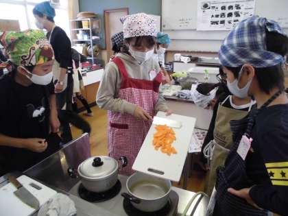 その後,実際に野菜を切ったり,ゆでたりしました。