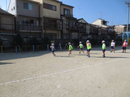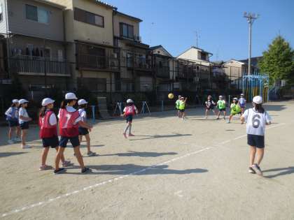 今日は1時間目が朝会だったので,2時間目に,1・2組合同で体育をしました。