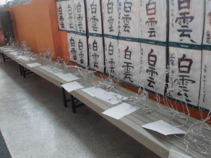 図画工作科では,「立ち上がれ ワイヤーアート」の学習をしています。1本の細い針金を,立体的に形作っていきます。立ち上がらせるのも,コツがいり,一苦労です。そこから,それぞれの創意工夫を凝らした作品が出来上がります。