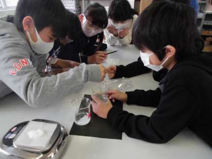 今日は,「食塩とミョウバンのとける量をふやすには,どうすればよいか。」について,考え,実験をしました。